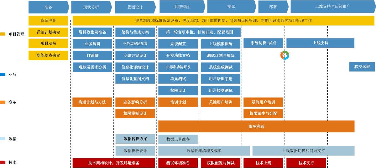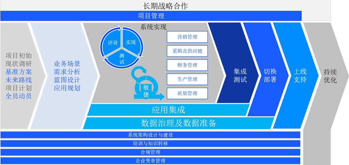 一方面考慮到SAP實施過程中必要的節(jié)點和步驟,另一方面同時兼顧項目實施過程中的敏捷性要求,以結(jié)果為導(dǎo)向打造企業(yè)信息系統(tǒng)。